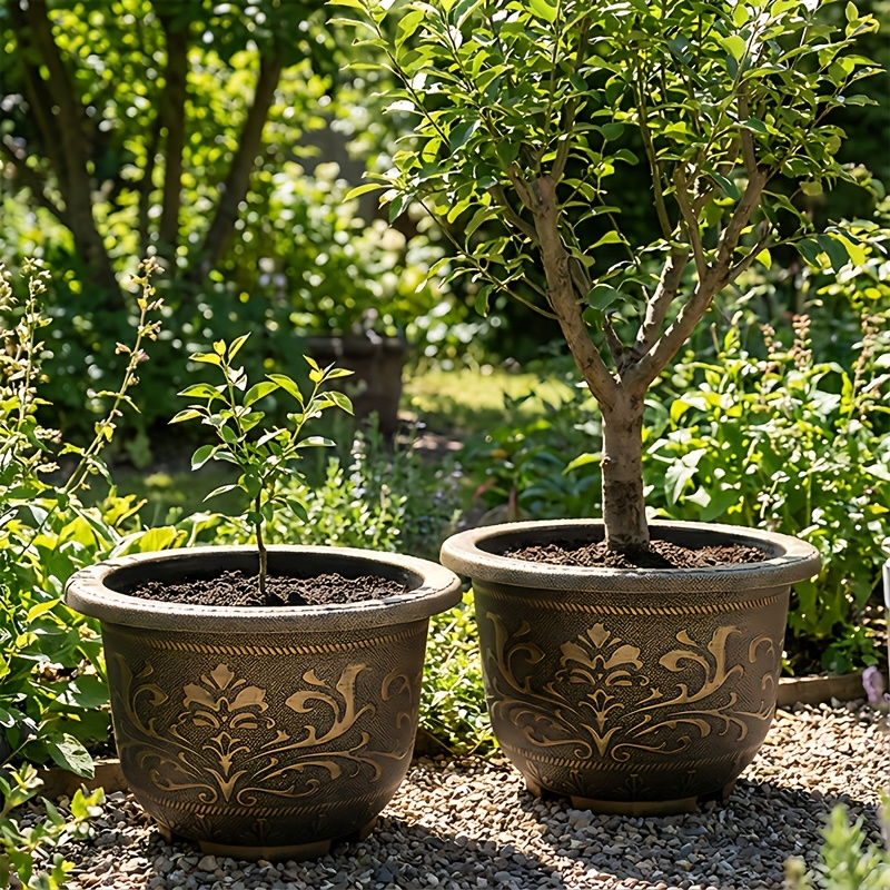 2pcs 20 Inches Resin European Flower Pots - Pots with Thick Paint, Durable Construction, Drainage Holes, and Classic Design-for Indoor & Outdoor Garden Home Plants Gardening Gift,home Decor